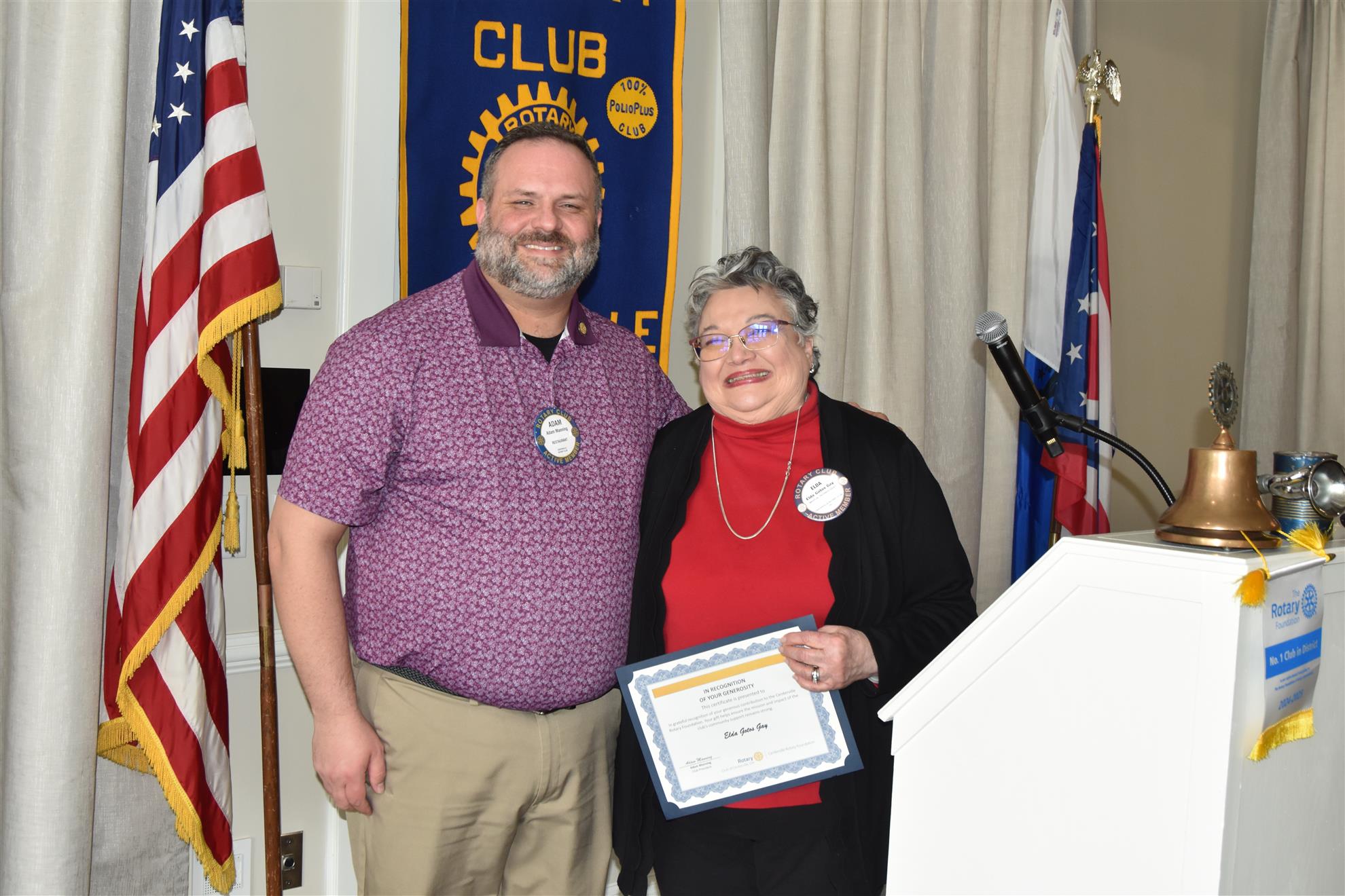 President Manning recognized Elda Gotos Gay for her generous donation to the Centerville Rotary Foundation. Thanks, Elda!