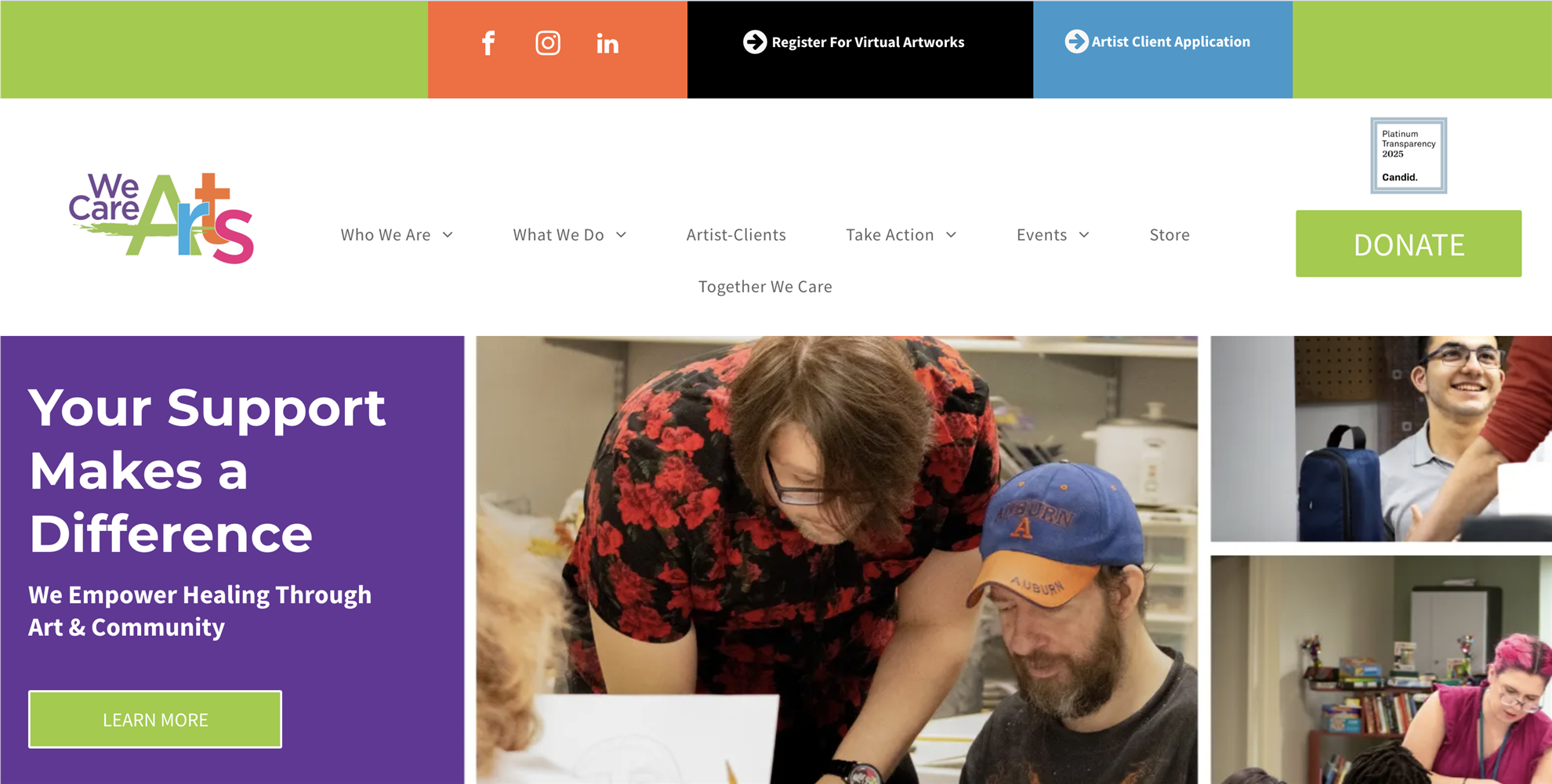 Kelly shared the mission of We Care Arts is: Empowering healing through art & community. And their mission is: We believe in a future where people with diverse abilities can achieve their full potential and feel embraced by an inclusive society.