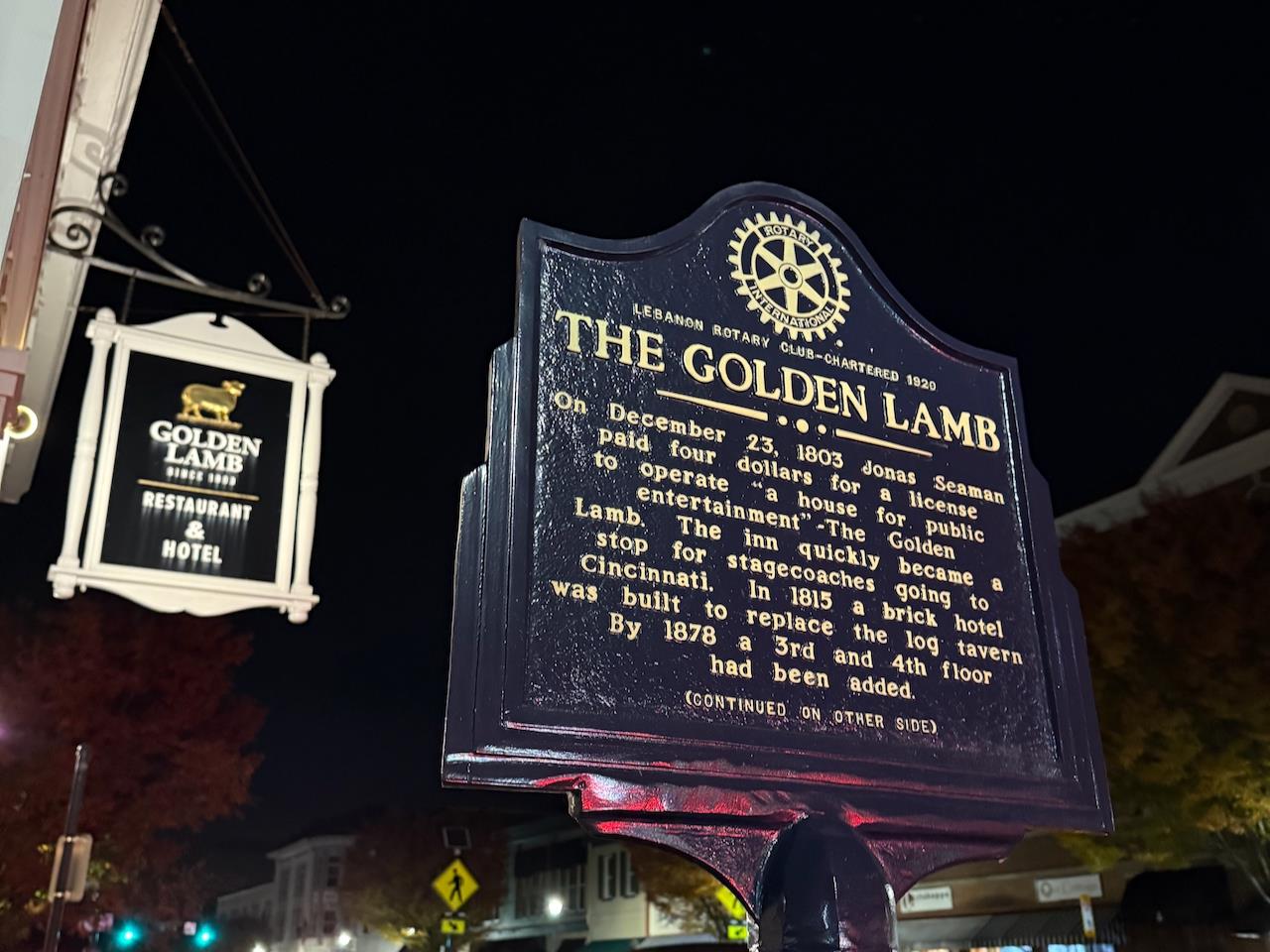 Our neighboring Rotary club in Lebanon sponsored historical signs all around town, including this one at The Golden Lamb.