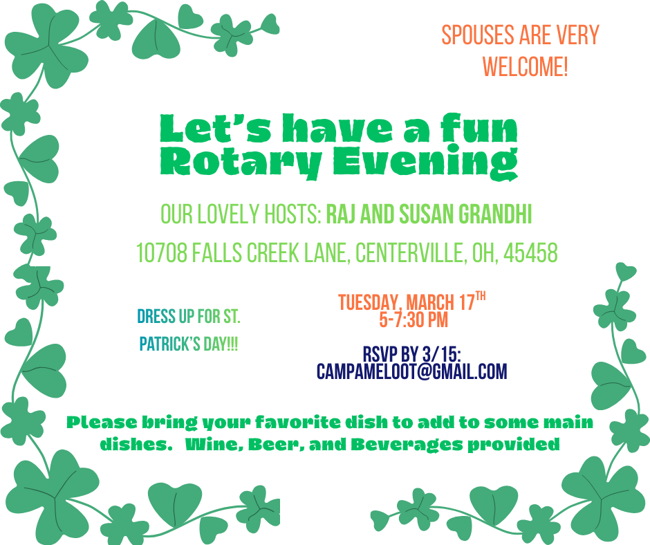 - Thanks to Pat for attending the recent Interact meeting. We may have 3 kids signed up for this year’s RYLA, held March 20-22.