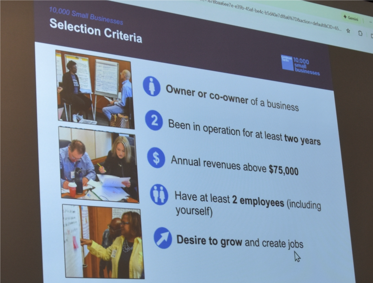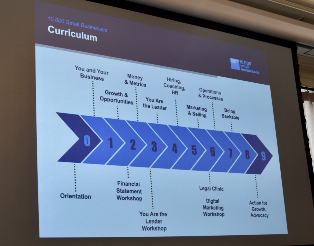 Val said that Cleveland is the main site for the 10K Small Business Program, but we have regional sites here at Sinclair, Cincinnati State and Columbus State, too. There are 18 across the country.
