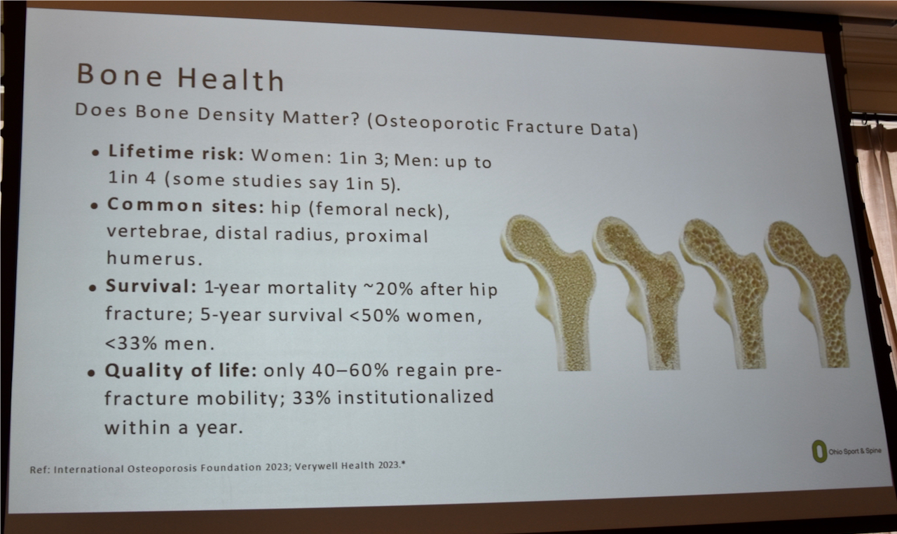 Bone health is important as you age. When young, you are developing bone density, but starting age 30, bone density starts going down. There is a sharp decline in women during menopause.