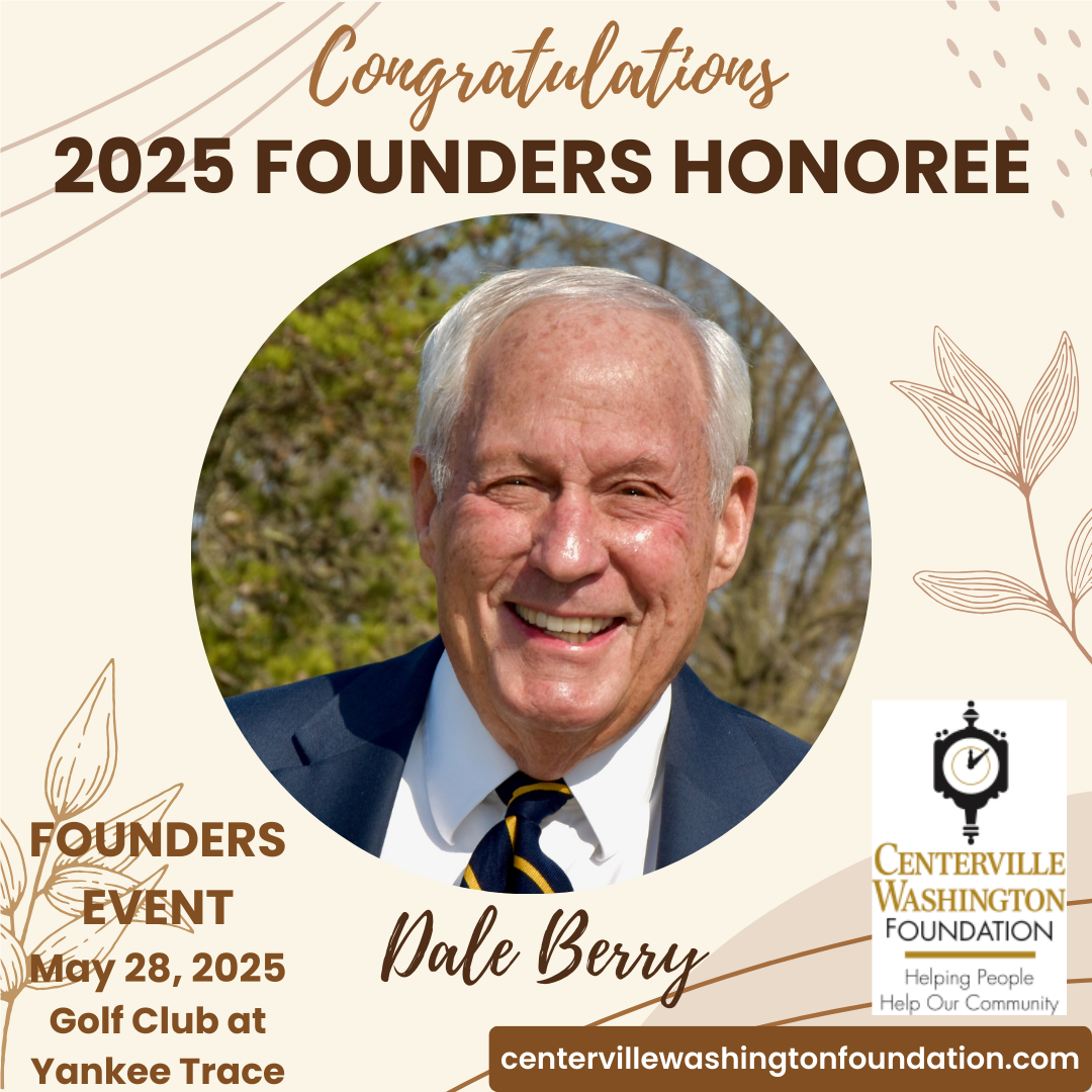 - Dale Berry is being recognized with the Founders Award by the Centerville-Washington Foundation on Wednesday, May 28, 11 am - 1 pm at Yankee Trace. You can still register HERE. Previous honorees from our club include Bob Daley, Sally Beals, Joyce Young, and Harvey Smith.