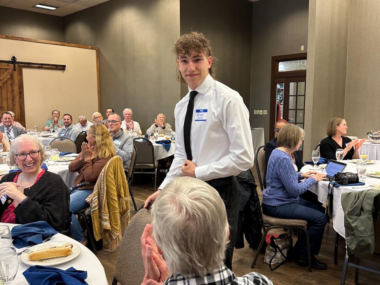 Micah Harry, introduced his moms, Sonia and Allison. He plans to attend Purdue University and study mechanical engineering. He would like to help people through what he creates. His book was Engineer’s Black Book, 3rd edition.