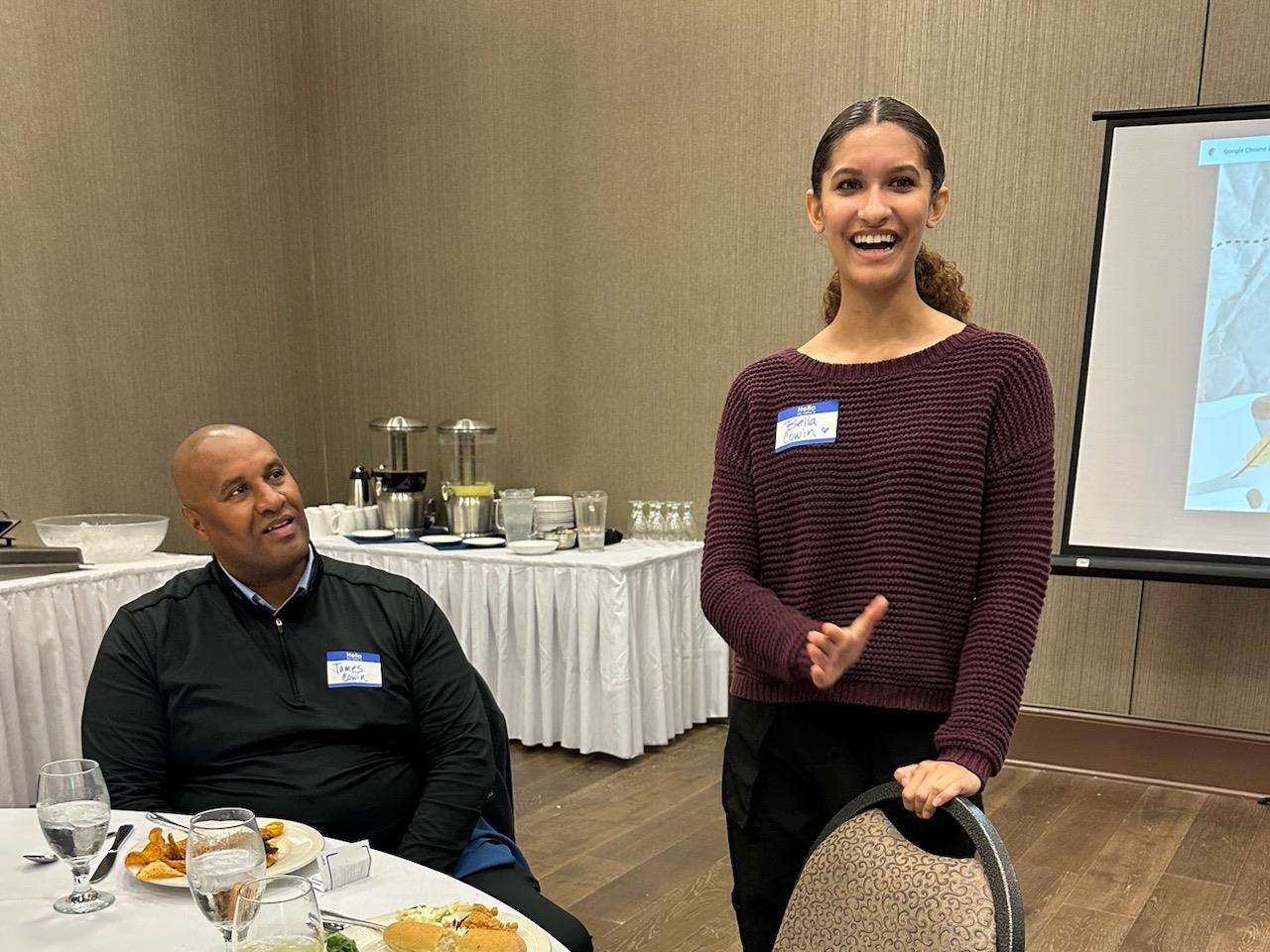 Bella Cowin introduced her dad, James. She graduated early and is already attending Aveda Frederic’s Institute to be an esthetician. Her book was Milady Skin Care and Cosmetic Ingredients Dictionary.