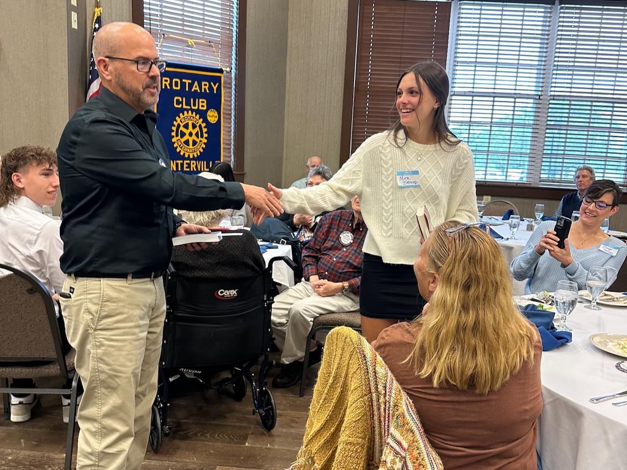 He noted the Centerville Rotary Club has been giving scholarships for over 50 years. The scholarship committee interviewed six students and they were all outstanding.