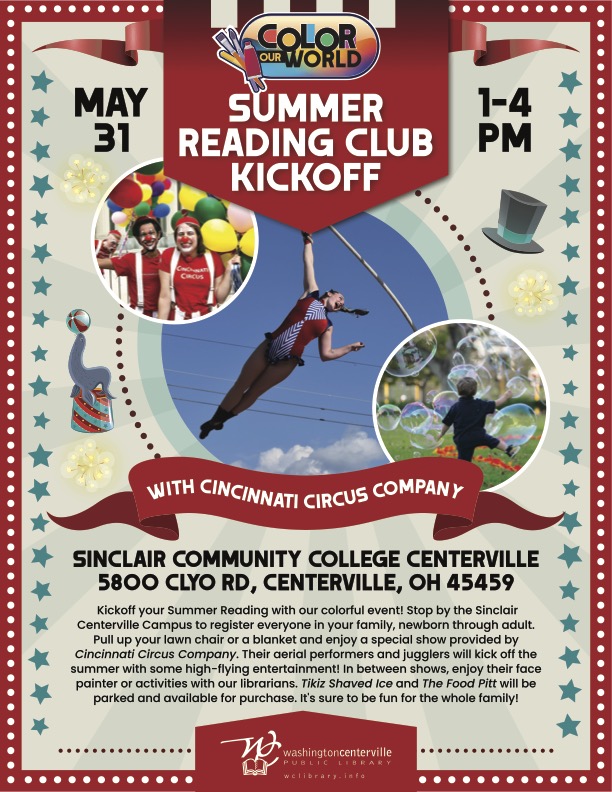 - Rotary will have a booth at the library’s Summer Reading Club kickoff May 31, 1-4 at Sinclair’s Centerville campus. We need volunteers to help staff our booth.