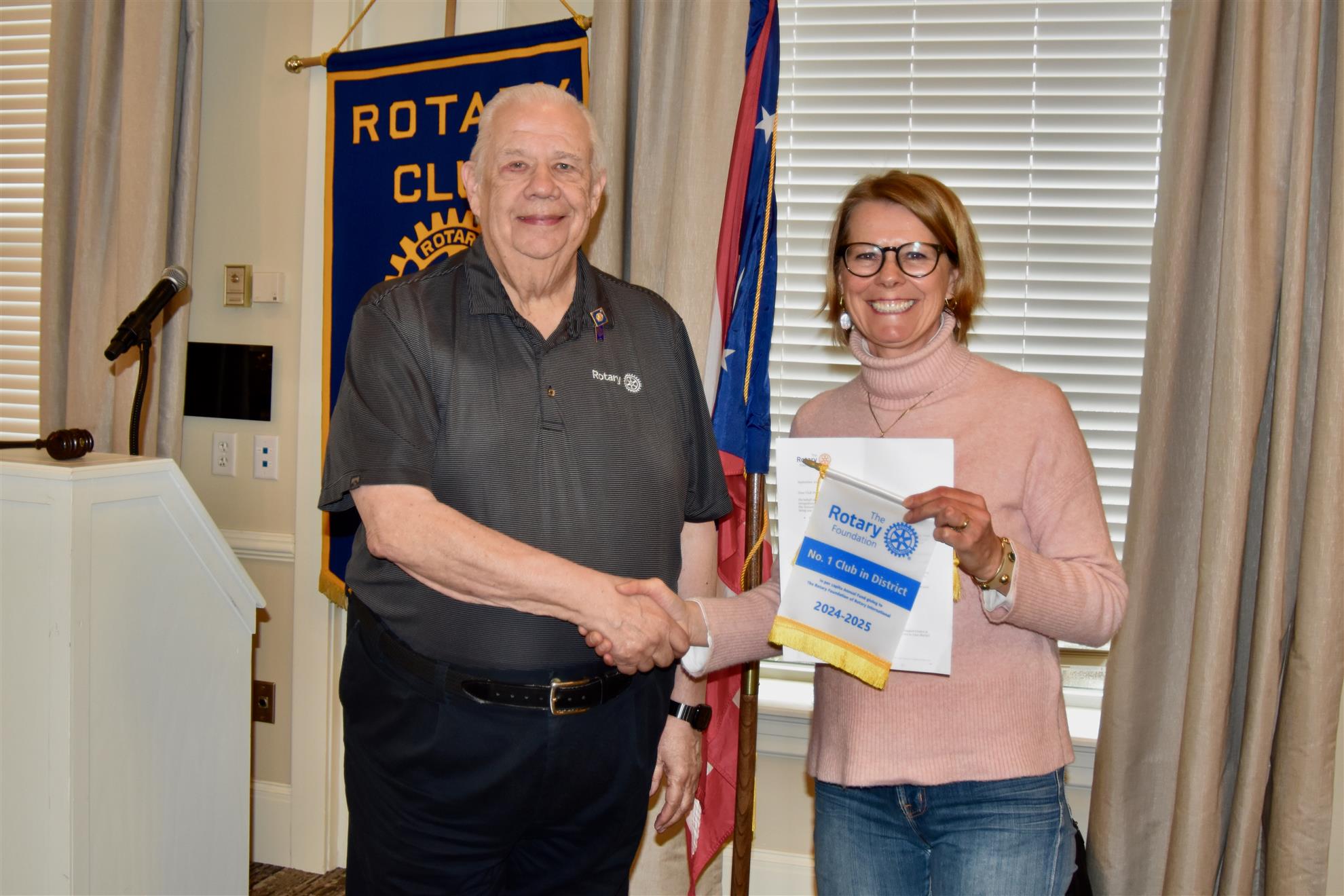 Frank then presented a letter and banner to Past President Sofie Ameloot for being the #1 per capita donor club in District 6670 during her year.