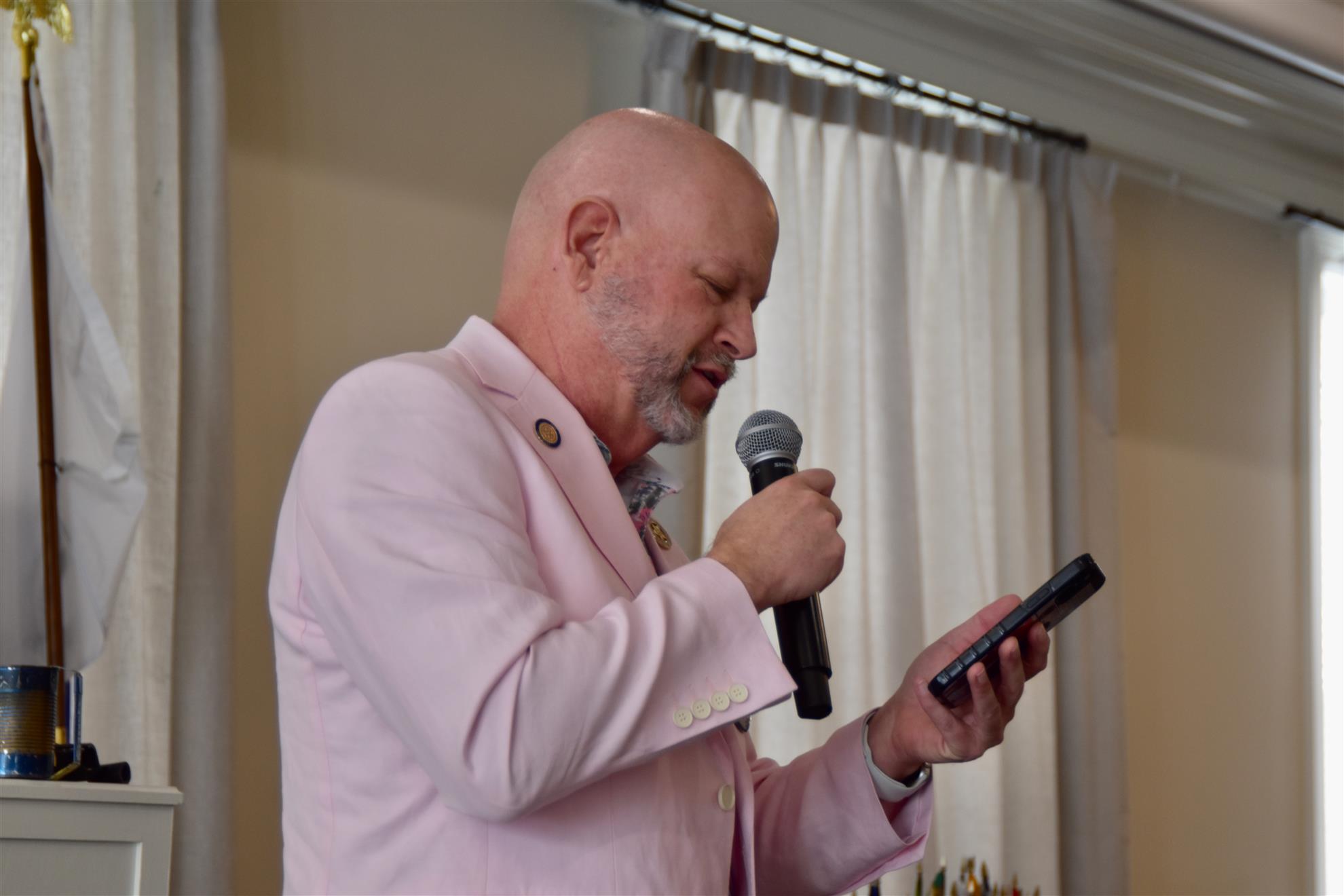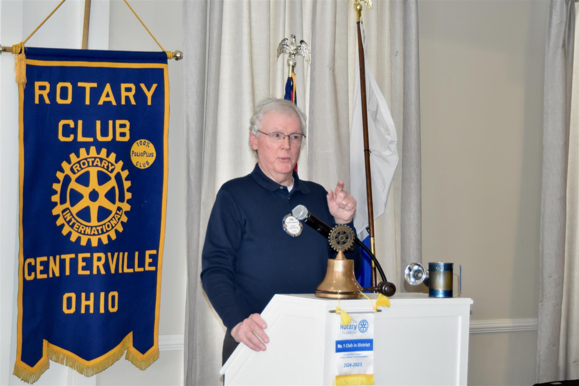President Adam Manning welcomed everyone to the Centerville Rotary Club and led reciting the Pledge of Allegiance. PDG Harvey Smith provided the prayer. Lee Hieronymus led singing of God Bless America.