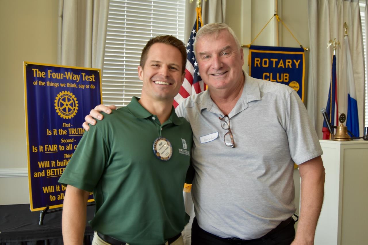 President Adam Manning welcomed everyone to the Centerville Rotary Club and led reciting the Pledge of Allegiance. Brian Hayes provided the prayer and Brad Thorp led singing God Bless America.
