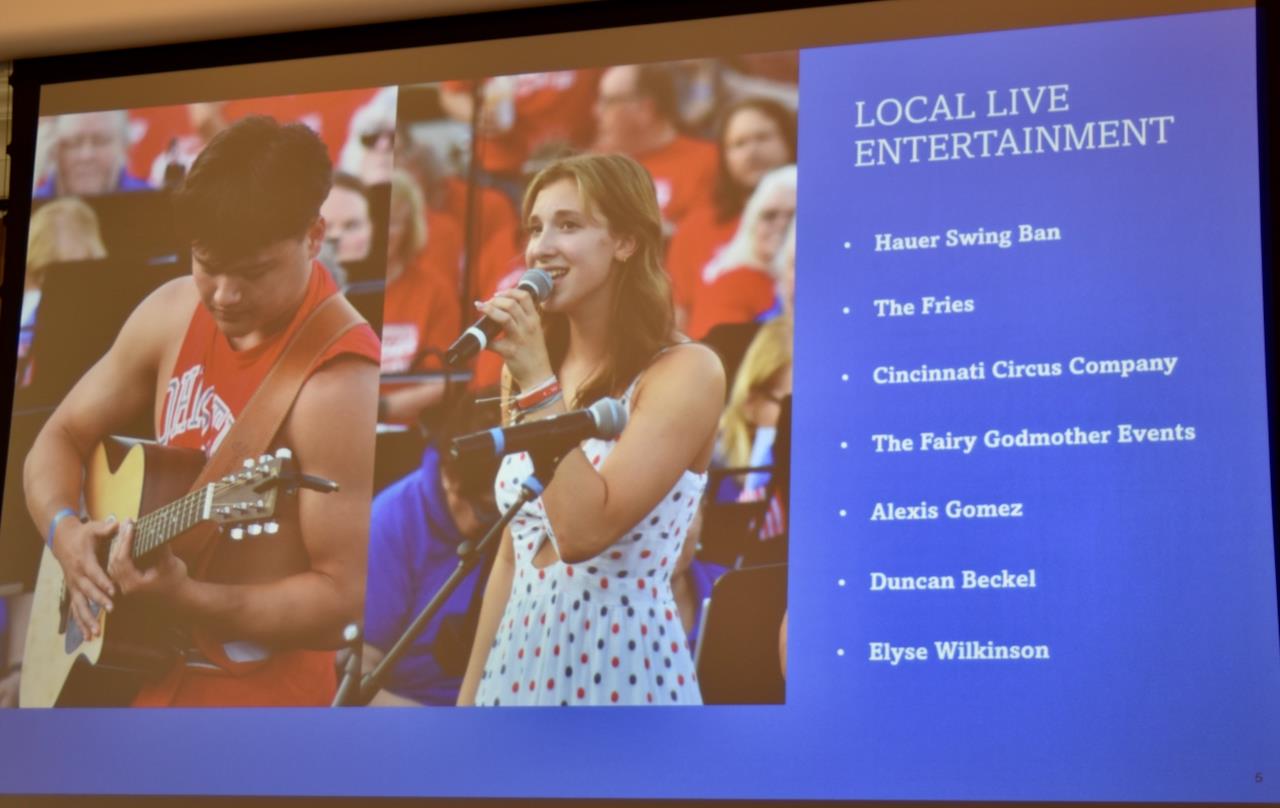 They put $1400 into the live entertainment budget; next year the budget will grow for America’s birthday focus.The Cincinnati Circus Company may do a full circus show next year.