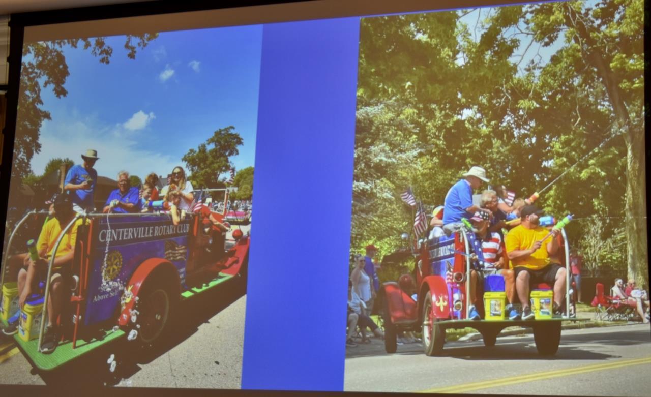 President Adam Manning welcomed everyone to the Centerville Rotary Club and led reciting the Pledge of Allegiance. PDF Harvey Smith provided the prayer.