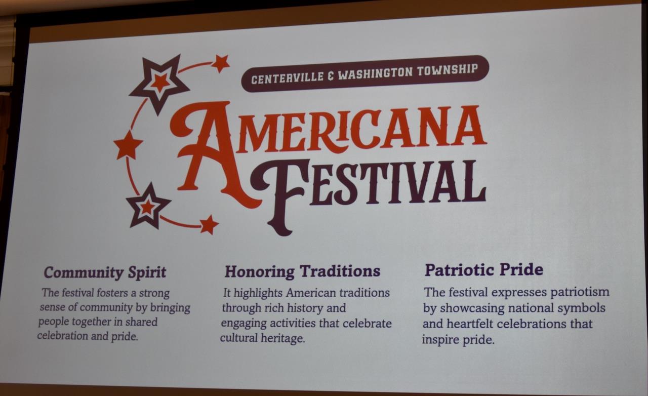 The Americana Festival was founded in 1972 by the Centerville-Washington Township Chamber of Commerce. It started as a sidewalk sale and was driven by local business community.